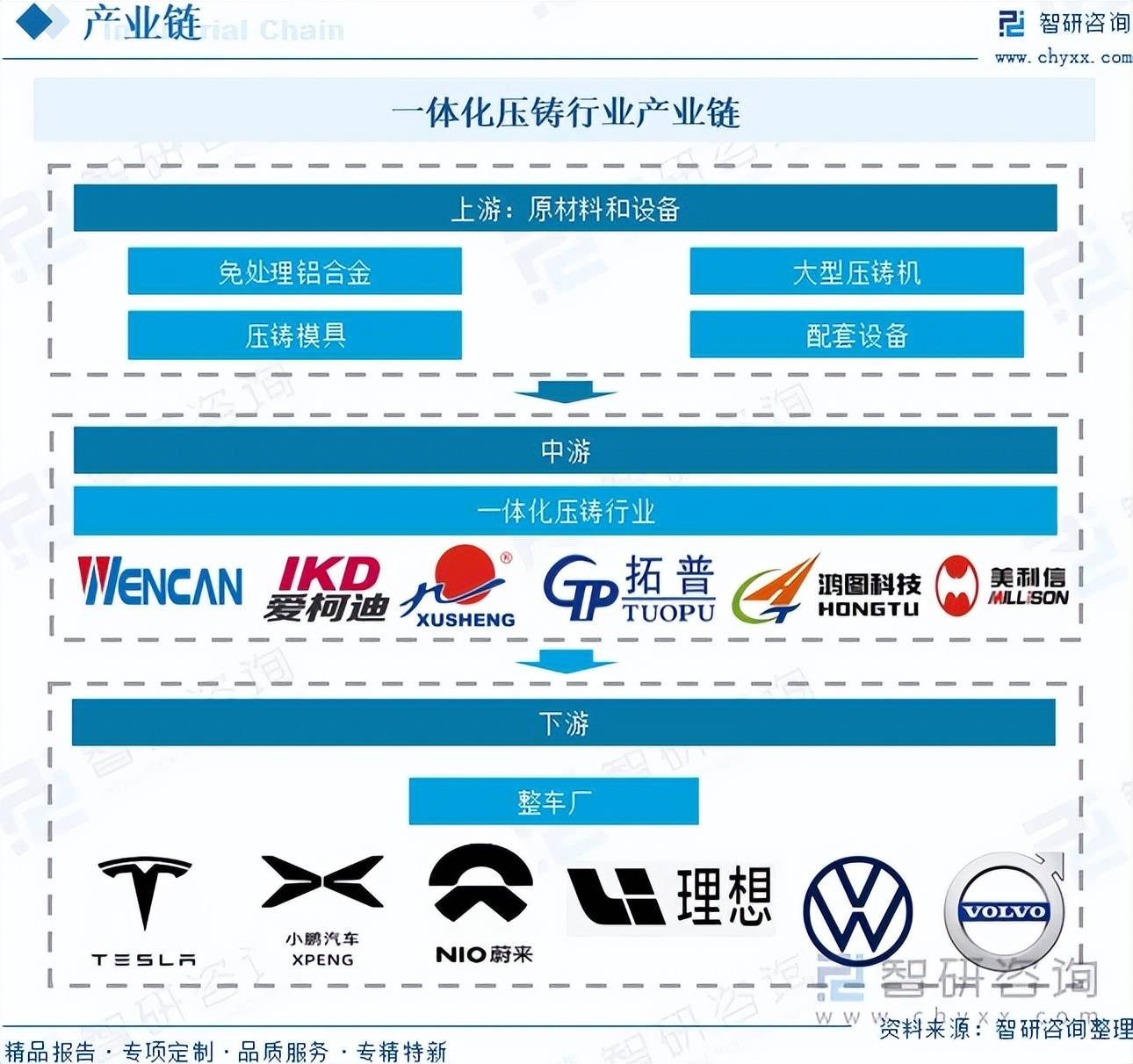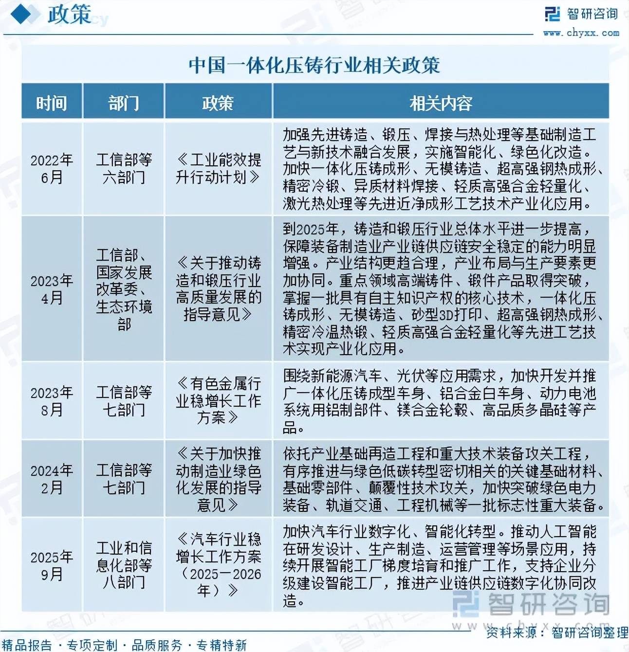 注:本文节选出自智研筹议发外的《2025年中邦一体化压铸行业计谋、财富链、市集领域、中心企业及他日趋向研判:一体化压铸工夫胀吹汽车轻量化改变,行业市集领域估计达368亿元[图]》行业认识作品,如需获取行业作品一共实质,可进入智研筹议搜刮查看。